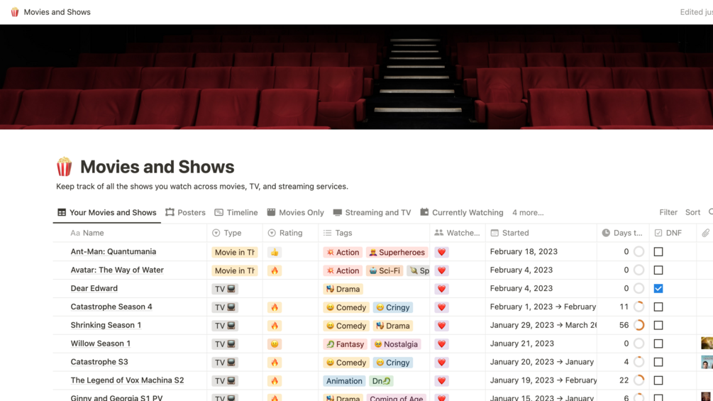 Ultimate Movie and Show Tracking Notion Template